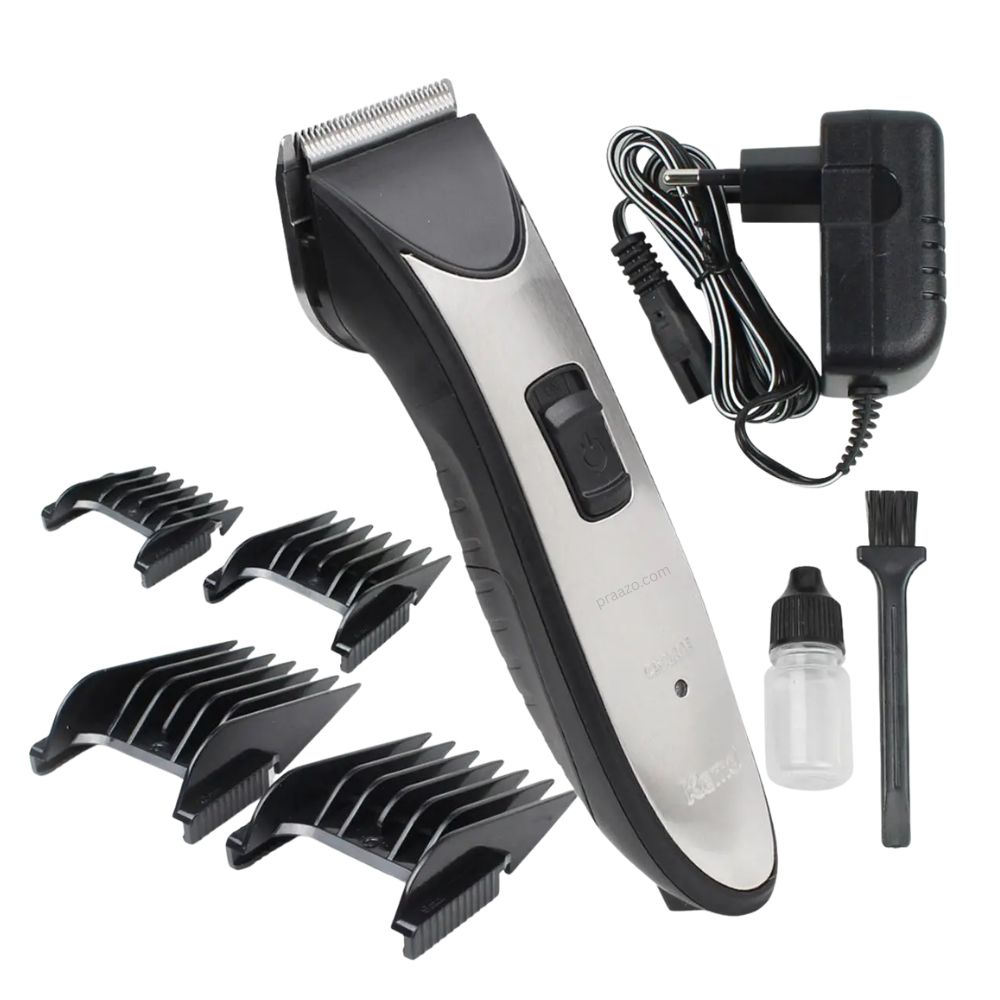 The clipper comes with four guide combs (3mm to 12mm), allowing you to easily adjust trimming lengths for different styles. Whether you prefer a close trim or a longer cut, the KM-3909 offers flexibility and control. Its ergonomic design and balanced weight ensure a comfortable grip, making it suitable for extended grooming sessions.